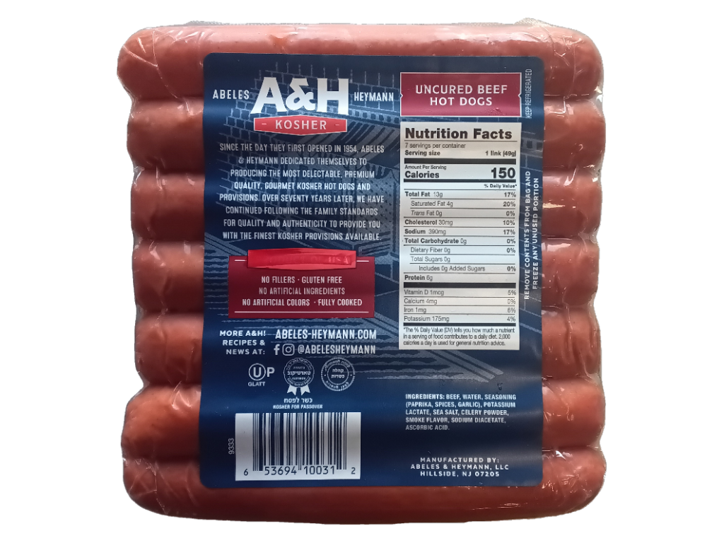 Abeles & Heyman Uncured Premium Beef Frankfurt, 12 Oz