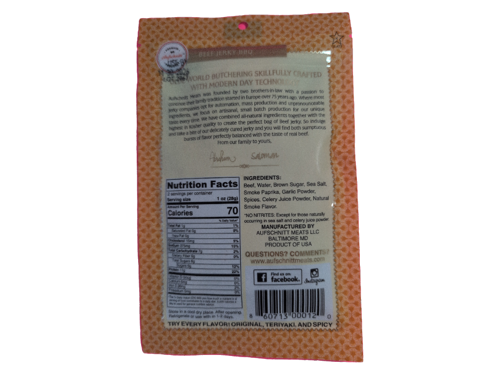 Aufschnitt Beef Jerky, Bbq Flavor, 2 Oz