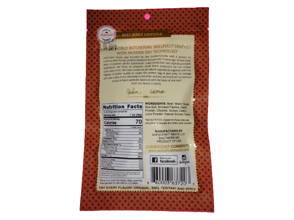 Aufschnitt premium products sweet chipotle beef jerky, 2 oz