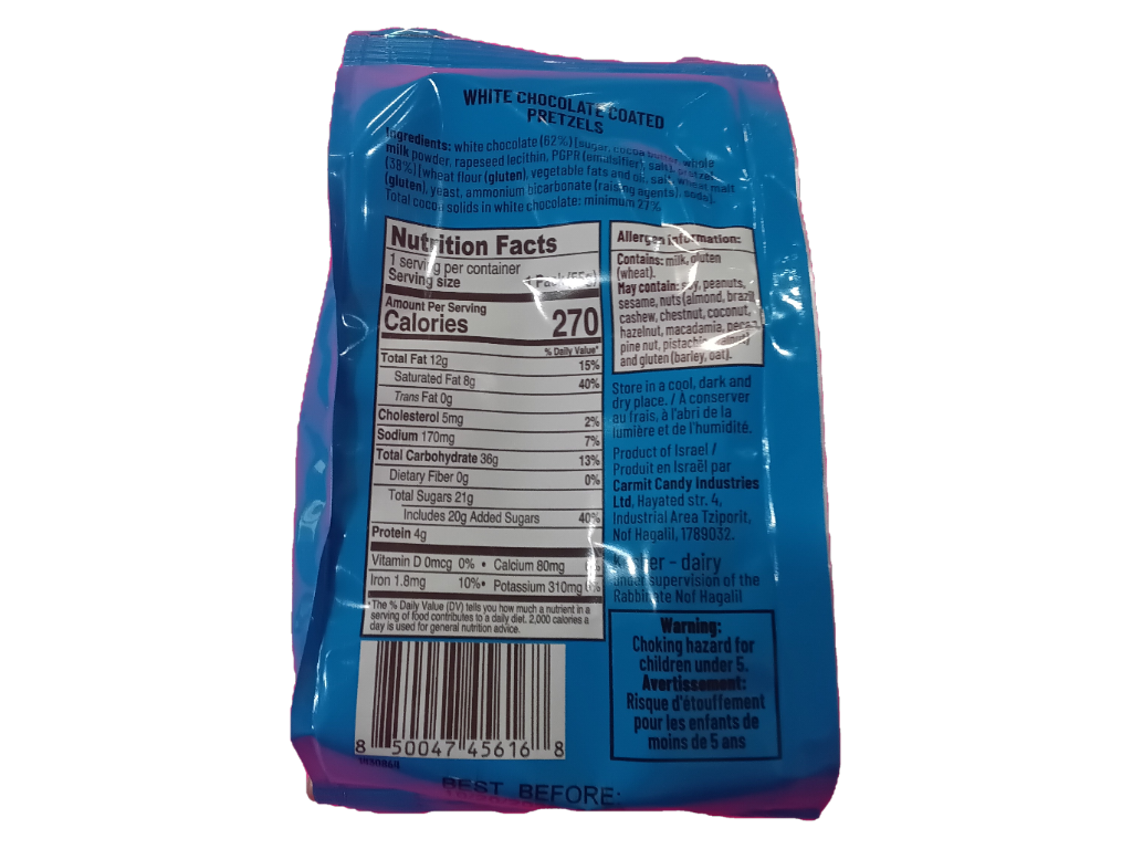 Carmit mix pretzels white choc coated pretzel, 1.94 oz
