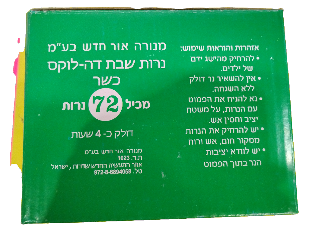 Menora shay ner ltd. De luxe shabbat candle, 72 ct