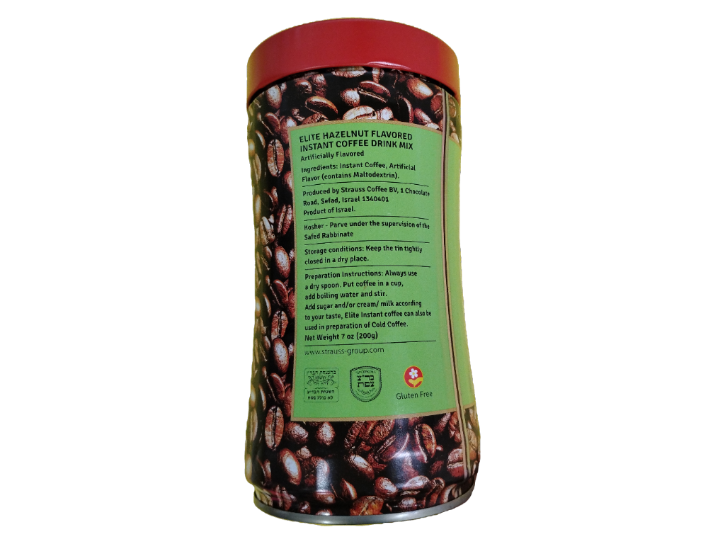 Elite instant hazelnut coffee can, 7 oz