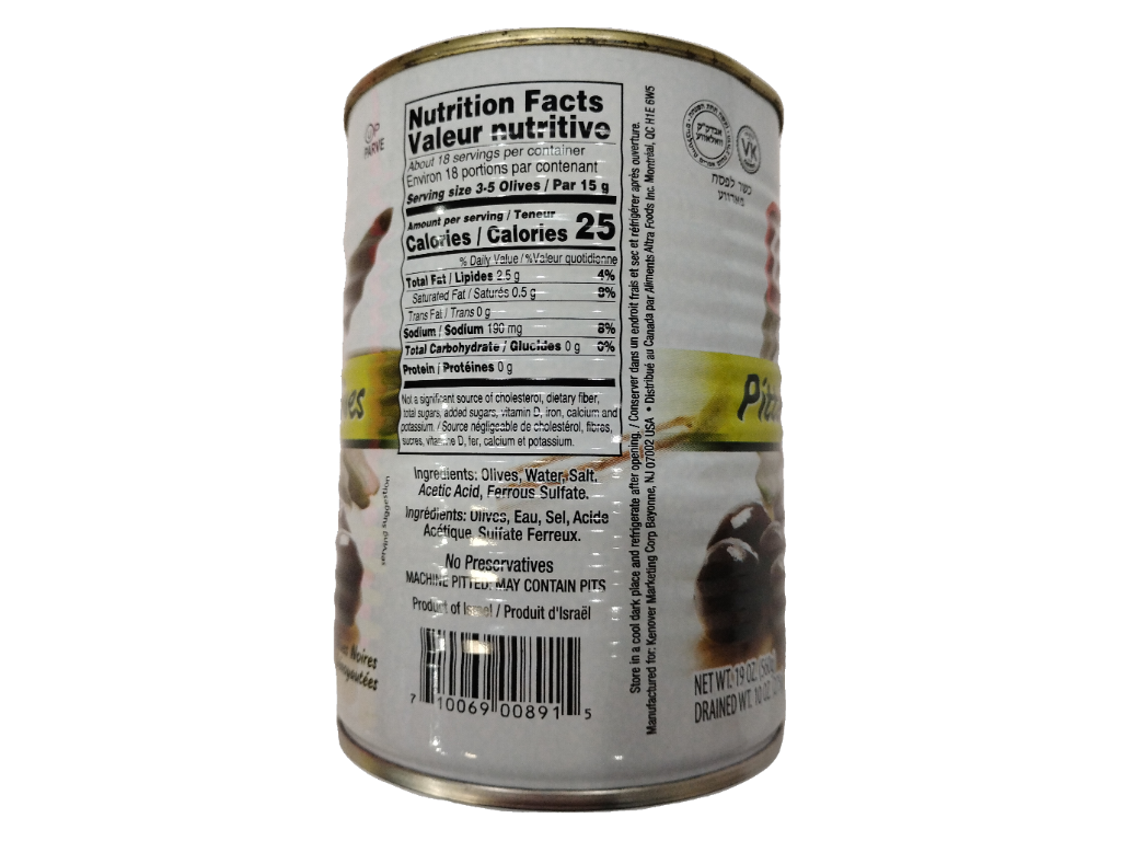 Gefen can pitted black olives, 19 oz