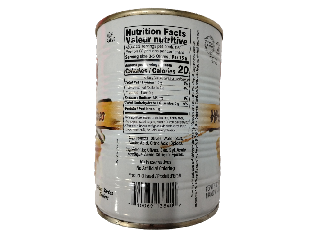 Gefen green manzanillo olives, 19 oz
