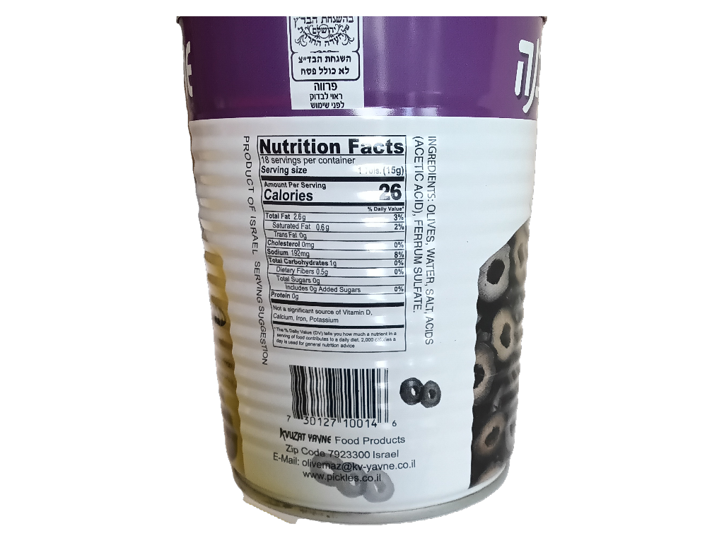 Kvuzat Yavne Black Olives Sliced, 19 Oz