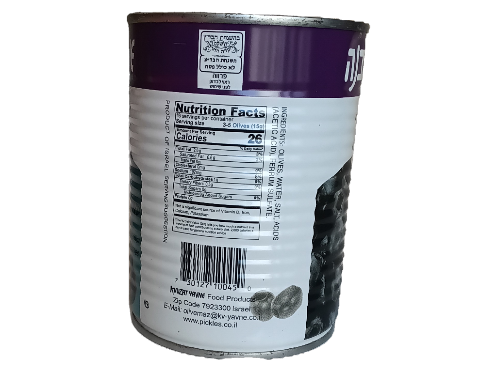 Kvuzat Yavne Pitted Black Olives, 19.7 Oz