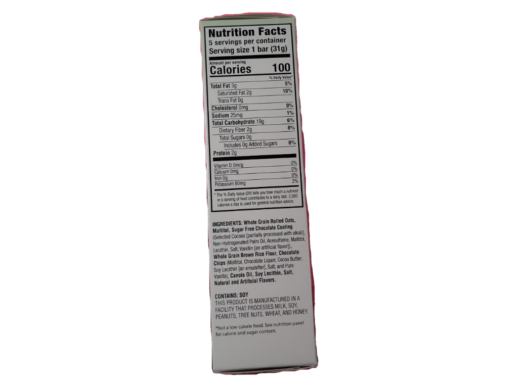 Oola Sugar Free Chocolatre Chip Granola Bar, 5.5 Oz