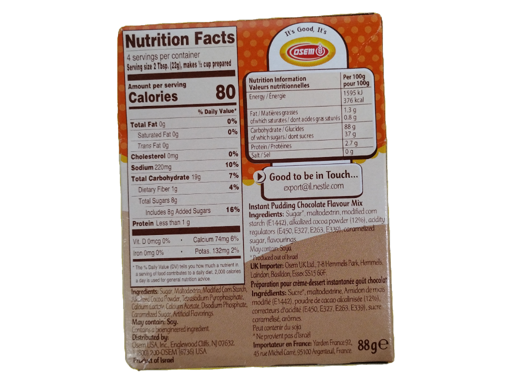 Osem pudding, chocolate instant, 3.1 oz