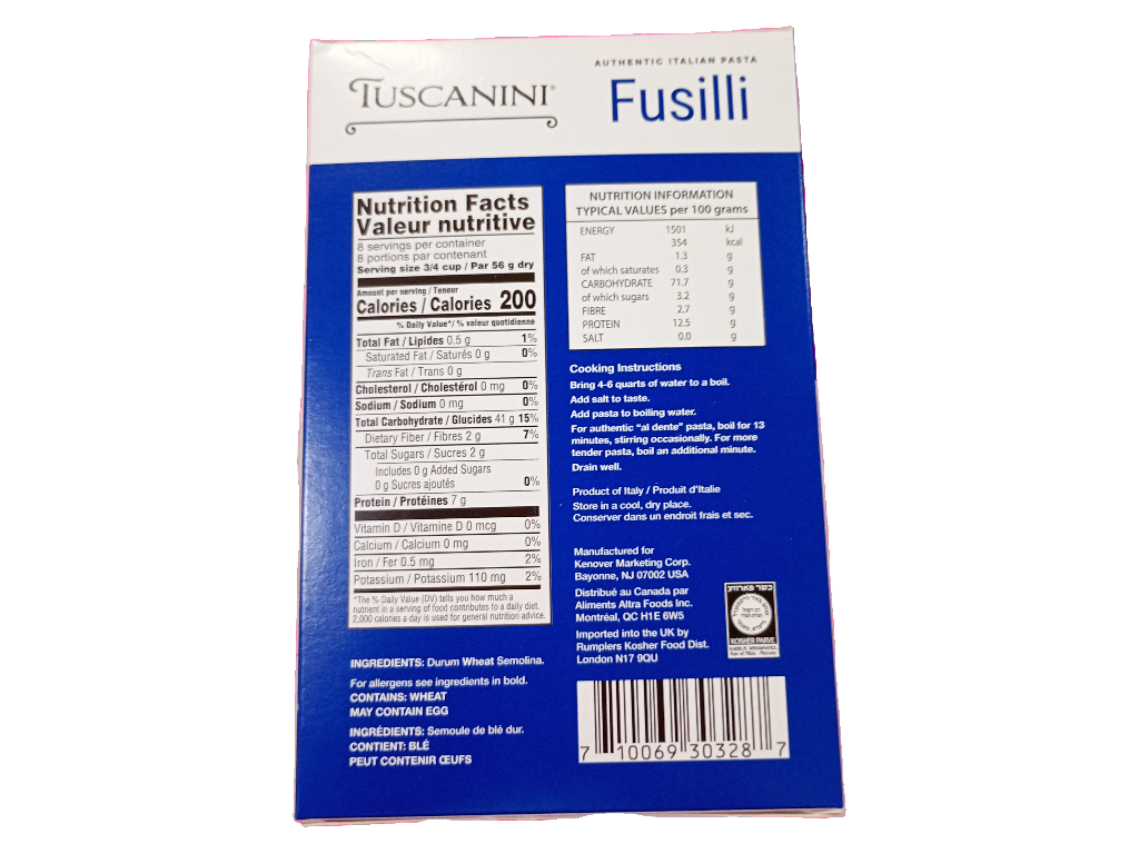 Tuscanini Pasta Fusilli, 16 Oz