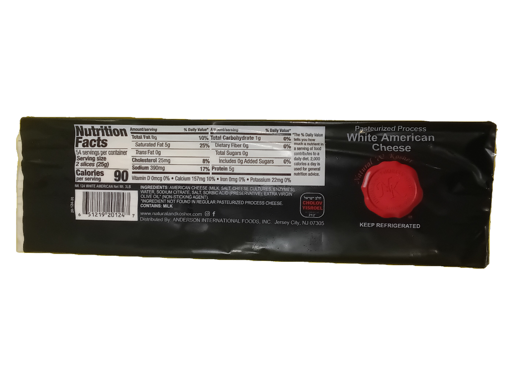 Natural Kosher American Cheese 108 Slice, 3 Lbs