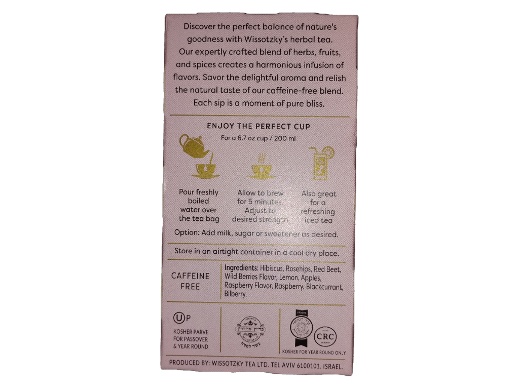Wissotzky Wild Berries Blast Herbal Tea, 20 Pk